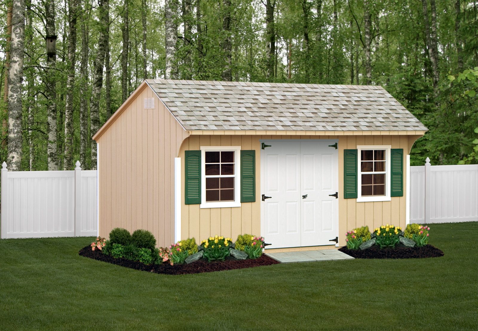 The Quaker shed’s traditional good looks make it a popular choice for a backyard or vacation property addition. The distinctive roof overhang on the front with sidewalls that arch up to the overhang imitates barn styles from a century ago. With higher sidewalls and open rafters the quaker shed features lots of headroom with the option for a loft to maximize your storage space. This shed is available in wood and vinyl siding and able to be customized to your specifications. You might also know this shed by its other older name, “the Saltbox Shed”